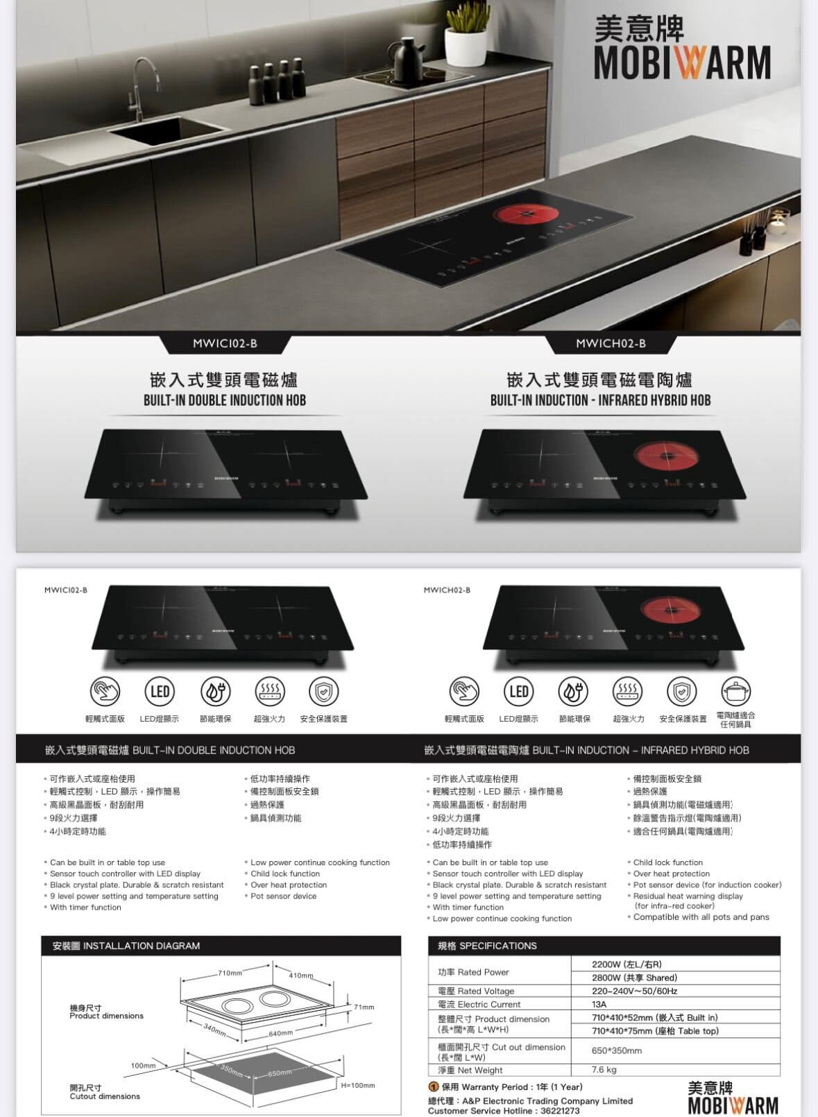 Mobiwarm (美意牌) 嵌入式雙頭電磁電陶爐 MWICH02-B